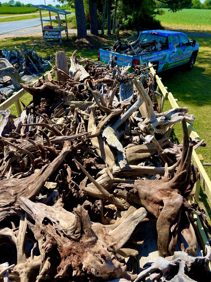 The driftwood selections at That Pond Place offer stumps, trunks, logs, branches, and knots from mostly cypress trees. Our premium driftwood is harvested from below water line and fully cured. Cured driftwood is more dense and last a very long time. Pricing is wholesale to the public with quantity discounts.