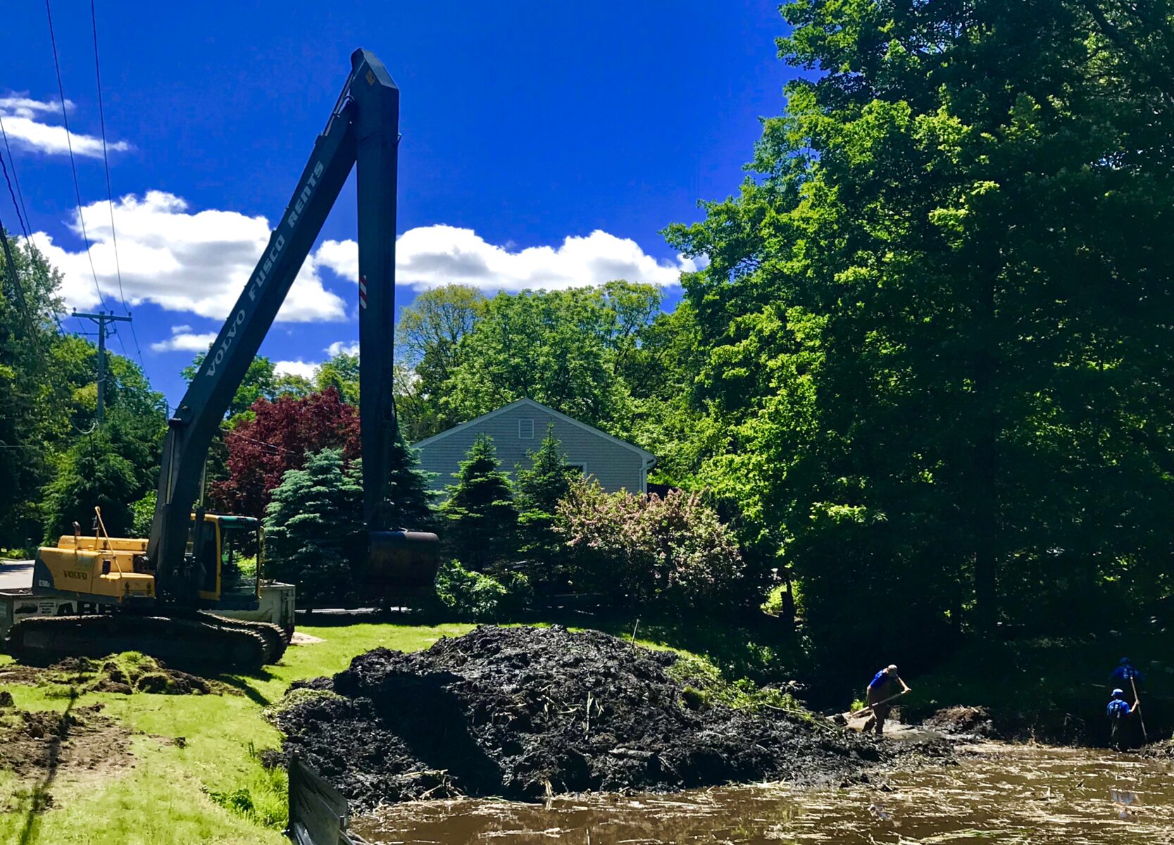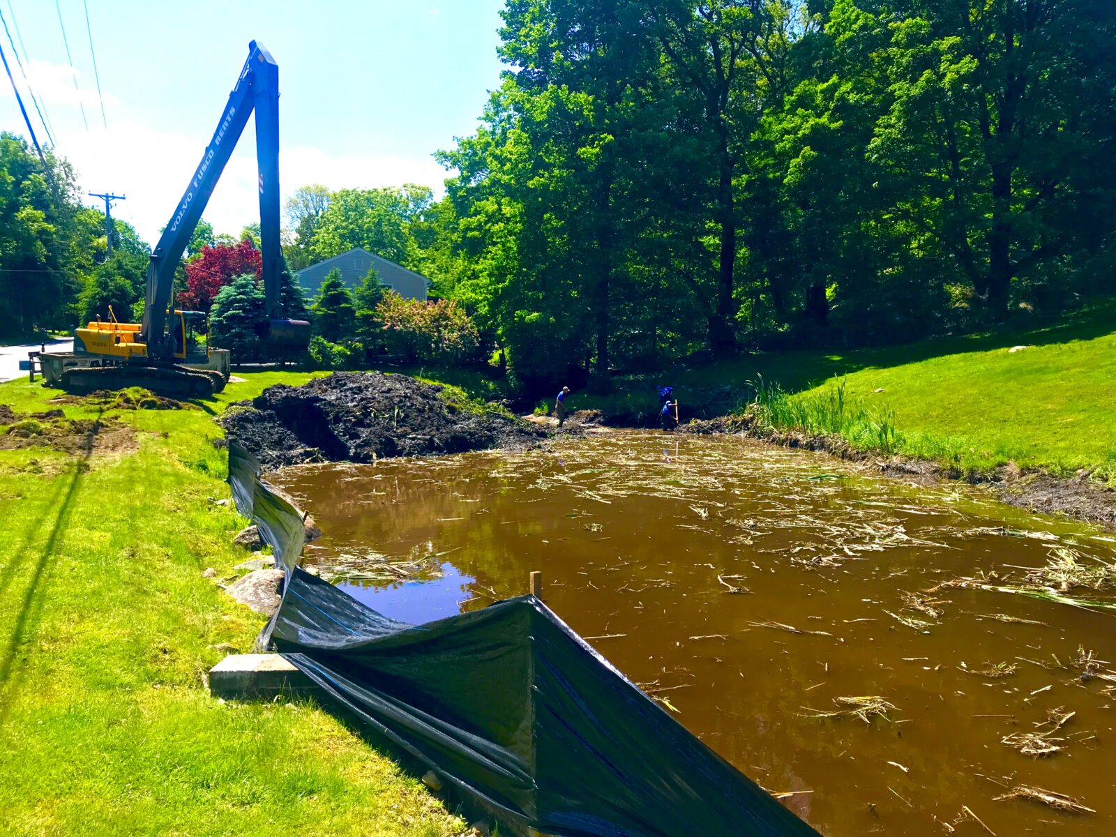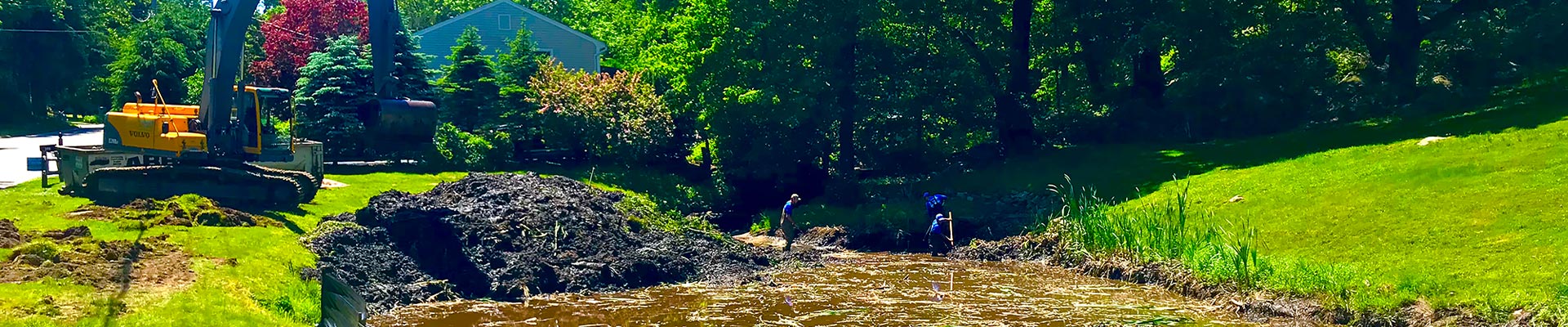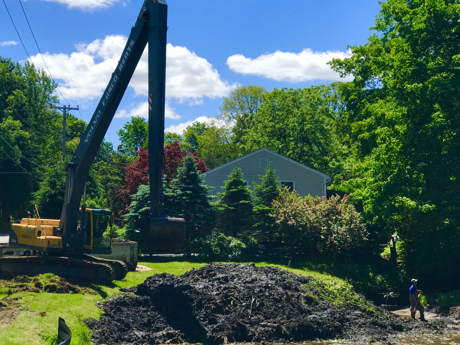 Mechanical dredging from That Pond Place is a good option when access to the body of water is unobstructed and open; and when the draining of the body of water is possible. Mechanical dredging typically utilizes excavators and other forms of heavy equipment to remove the years of accumulated sediment and organic debris. Solid dredged materials can be re-used on site, or removed from site.