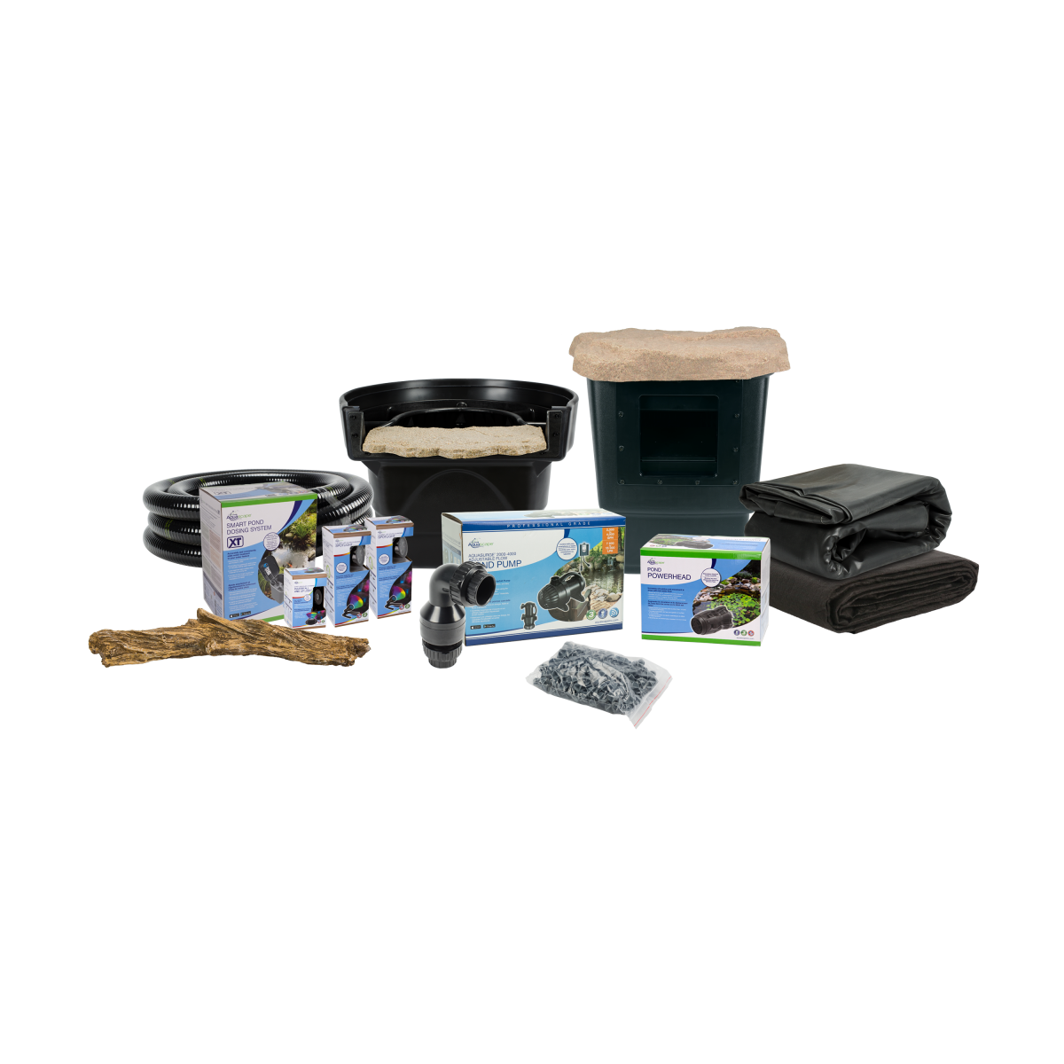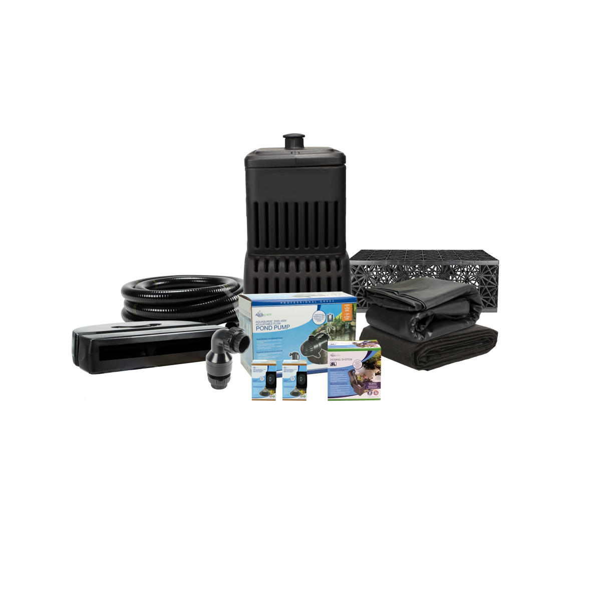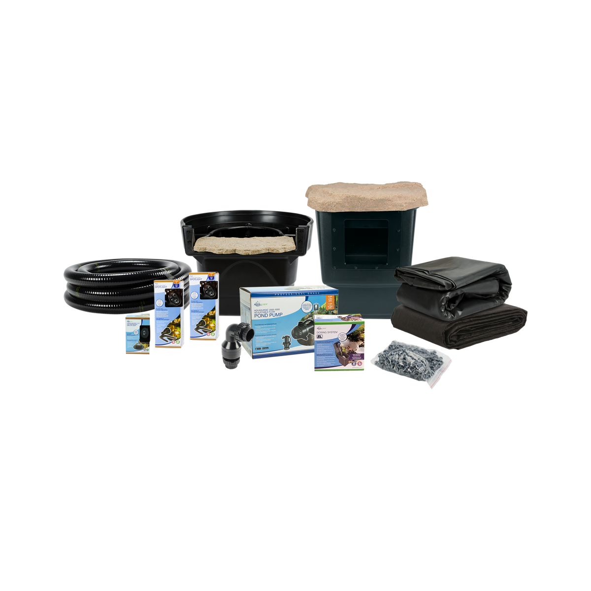 That Pond Place offers COMPLETE pond kits! Everything you need, one stop, one kit, DONE. Talk to our retail associate to get set up.
