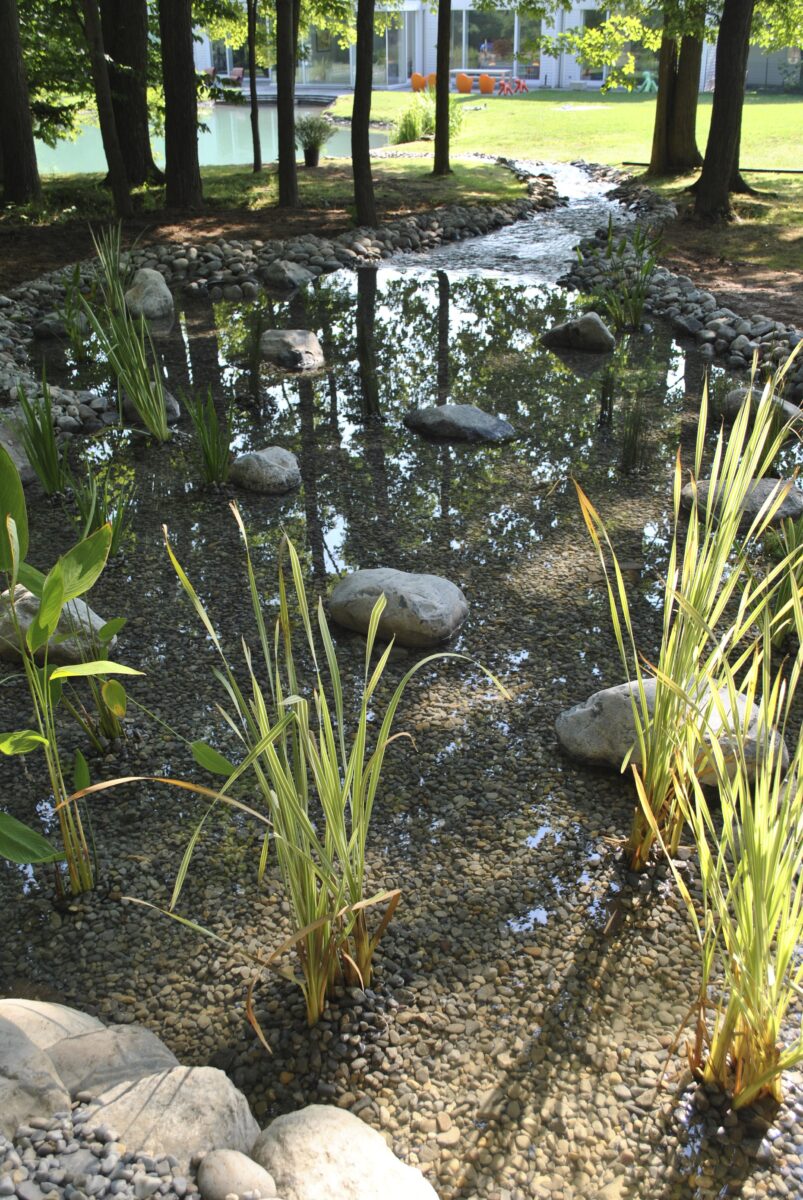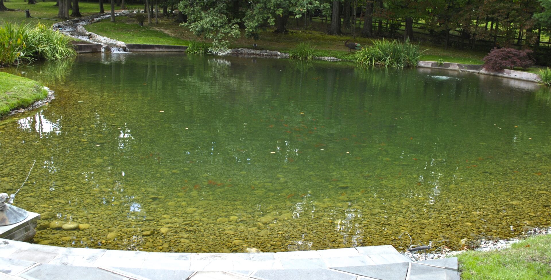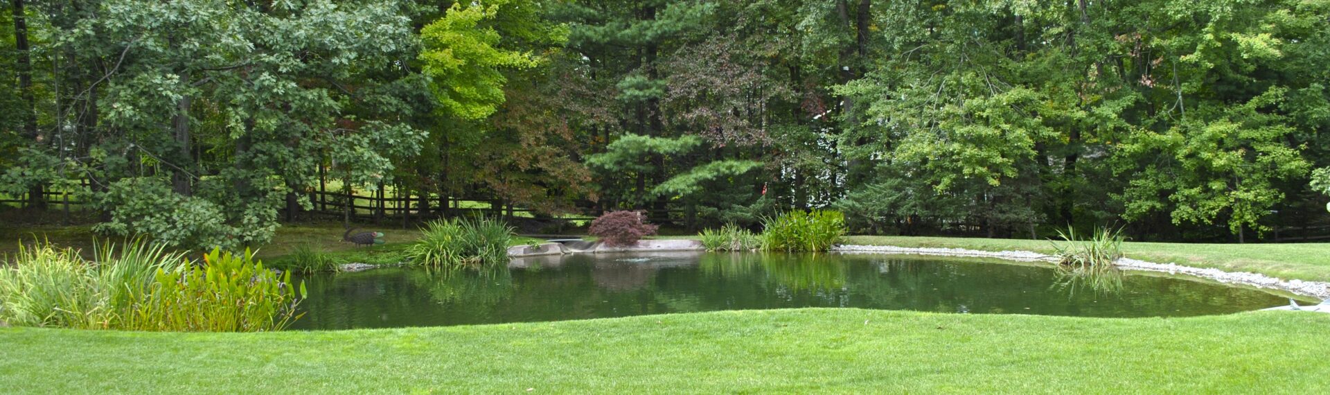Large scale pond construction in Morristown, NJ. This large scale koi pond is equipped with a large scale wetland filter, and an amazing 80′ long waterfall and stream.