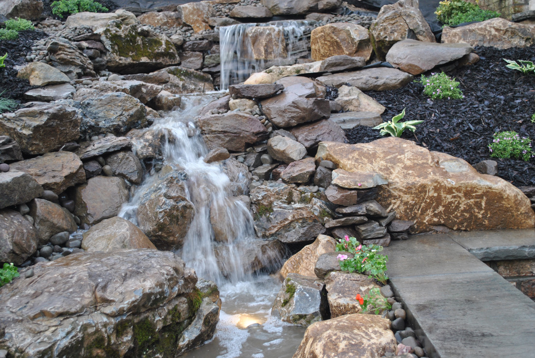For some projects the FSA team will travel and this is one such project. This amazing pondless waterfall project was built in Oyster Bay, NY and pictures do not do this project justice. One of our favorites with multiple cascades, pooling areas, stream, rapids. Decorated with aquatic planting areas, and a full scale lighting system to enjoy this feature anytime of days. Awesome pondless waterfall installation!!