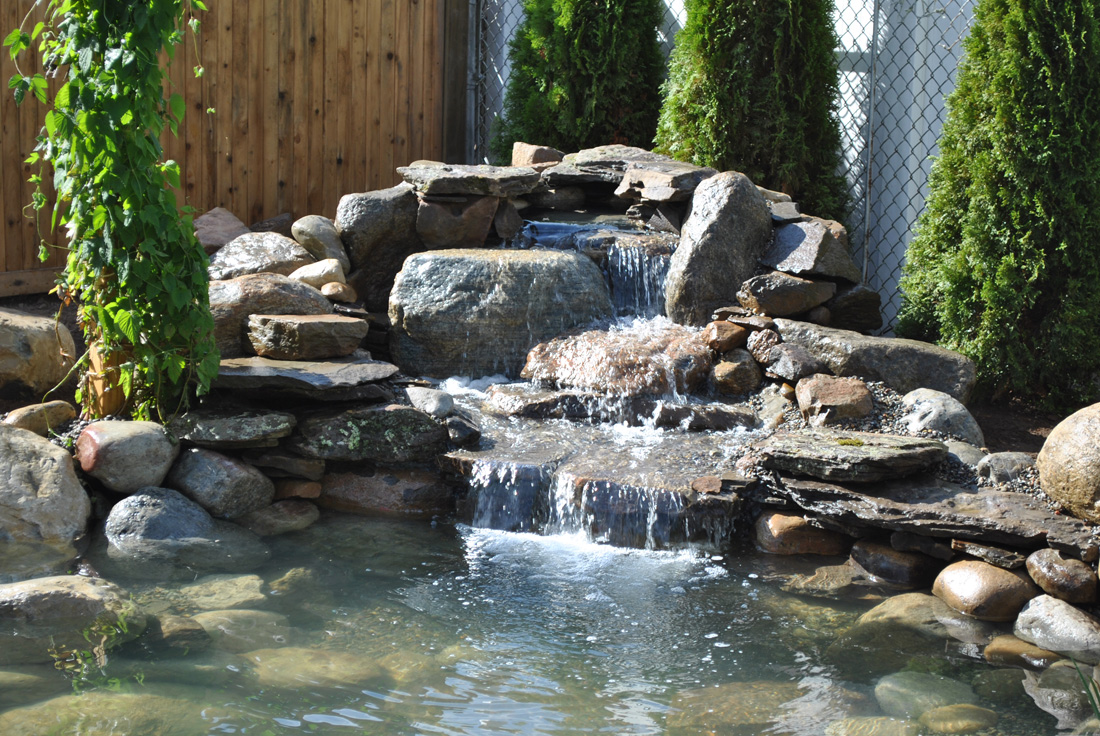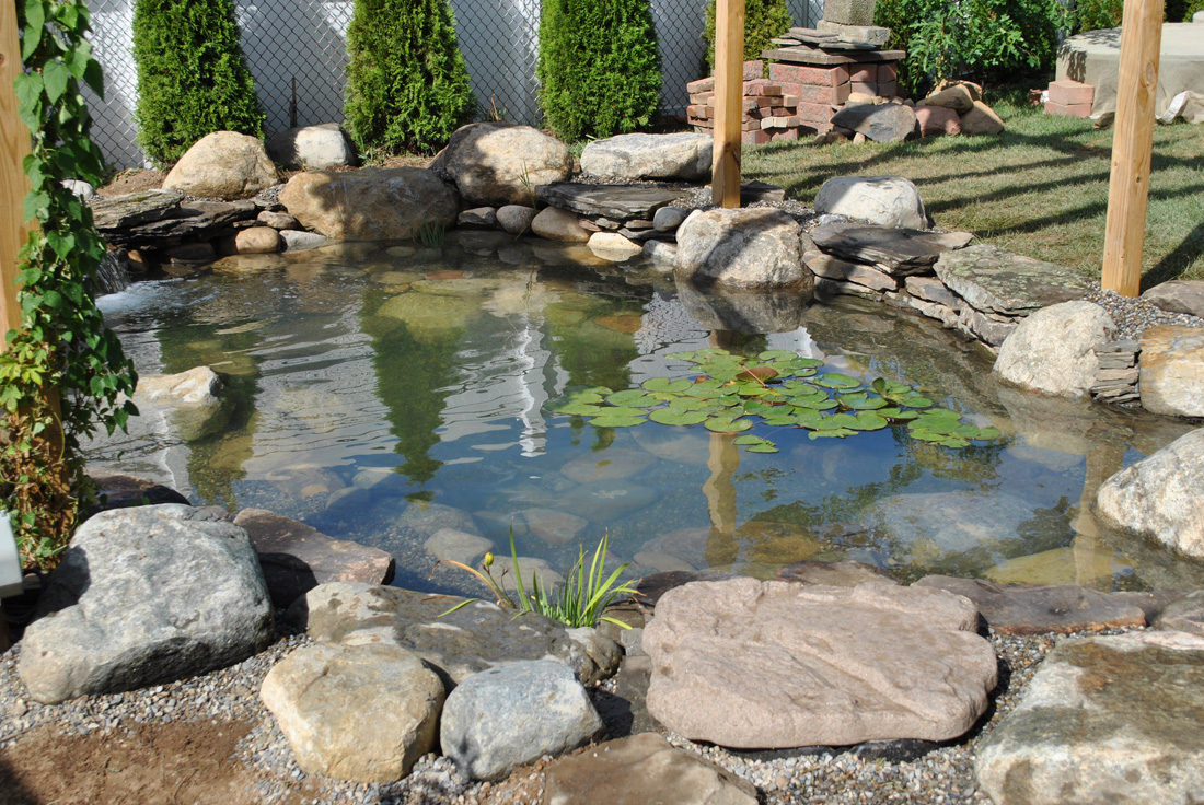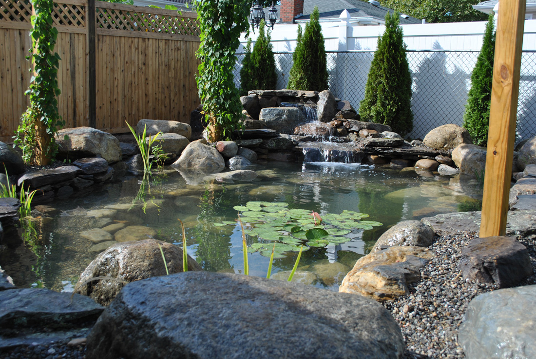 This customer already had his outdoor living area, already had his trellis and outdoor cooking area. Now it was time for the pond. Another pond from our growing portfolio of Staten Island, NY pond installations. This water garden koi pond finished off this backyard perfectly!